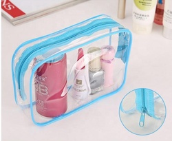 شفافة كيس بولي كلوريد الفينيل مخصص واضح البلاستيك حقيبة مستحضرات تجميل من البلاستيك مع عمق مجمعة لتعبئة زجاجات ماكياج